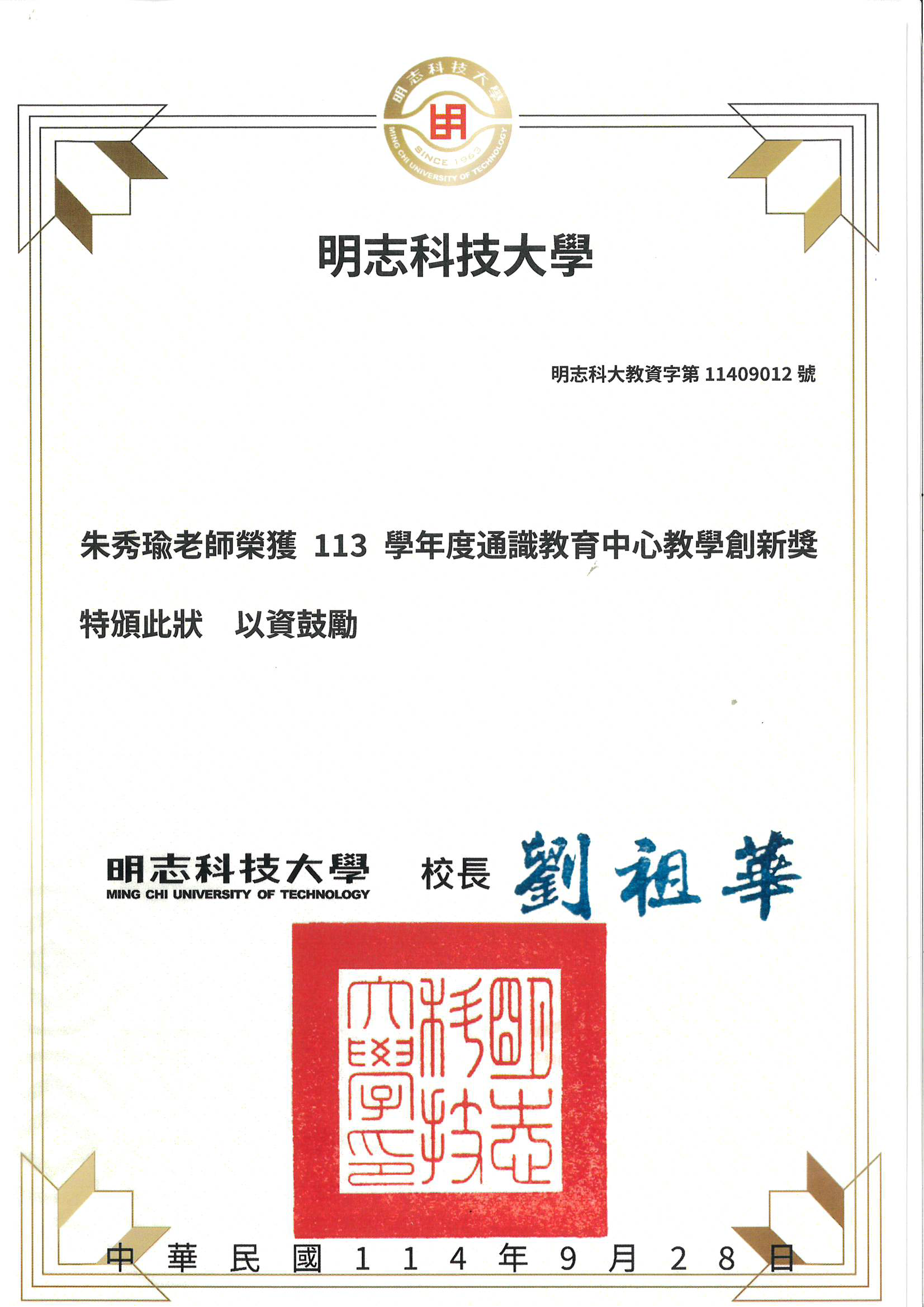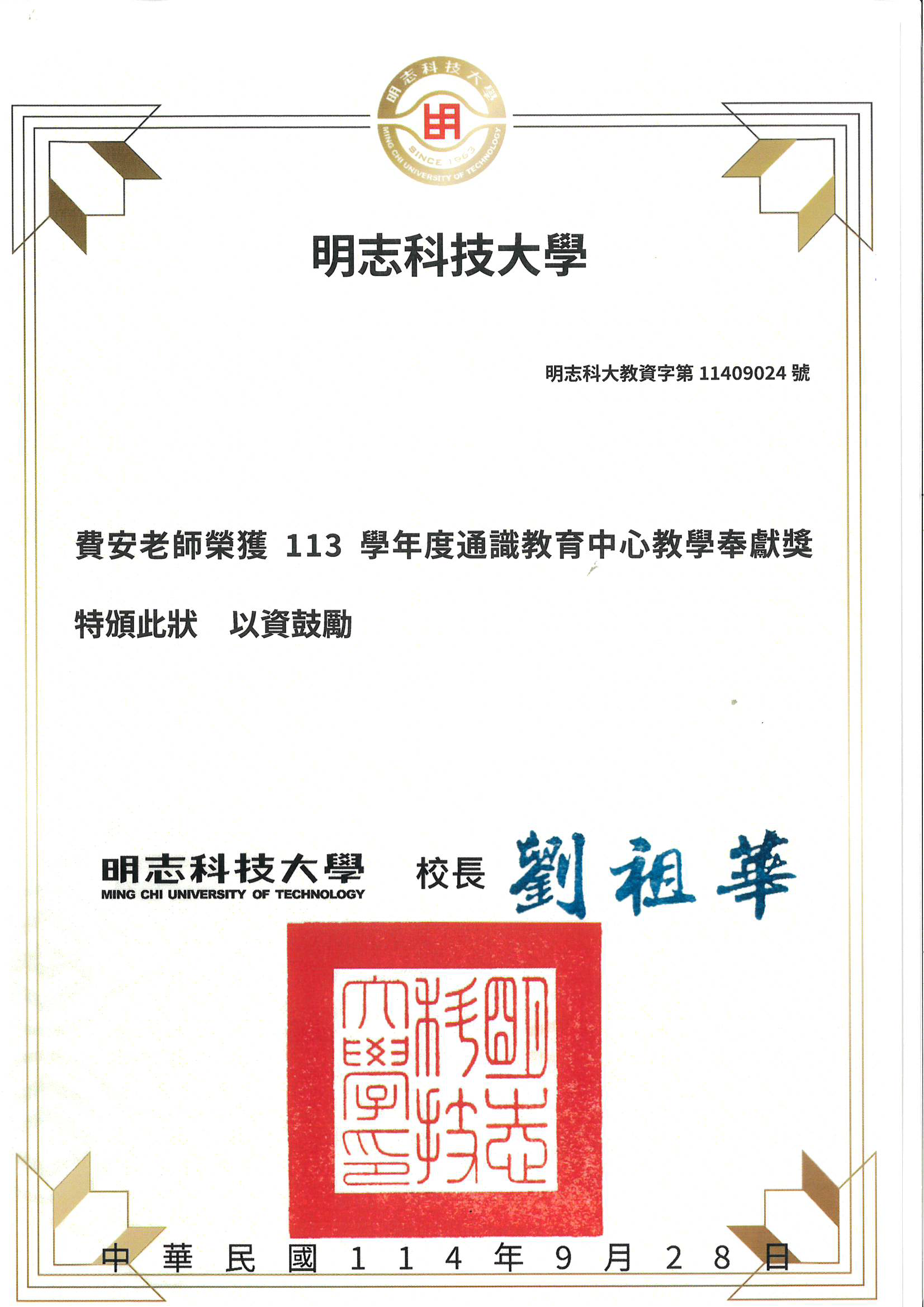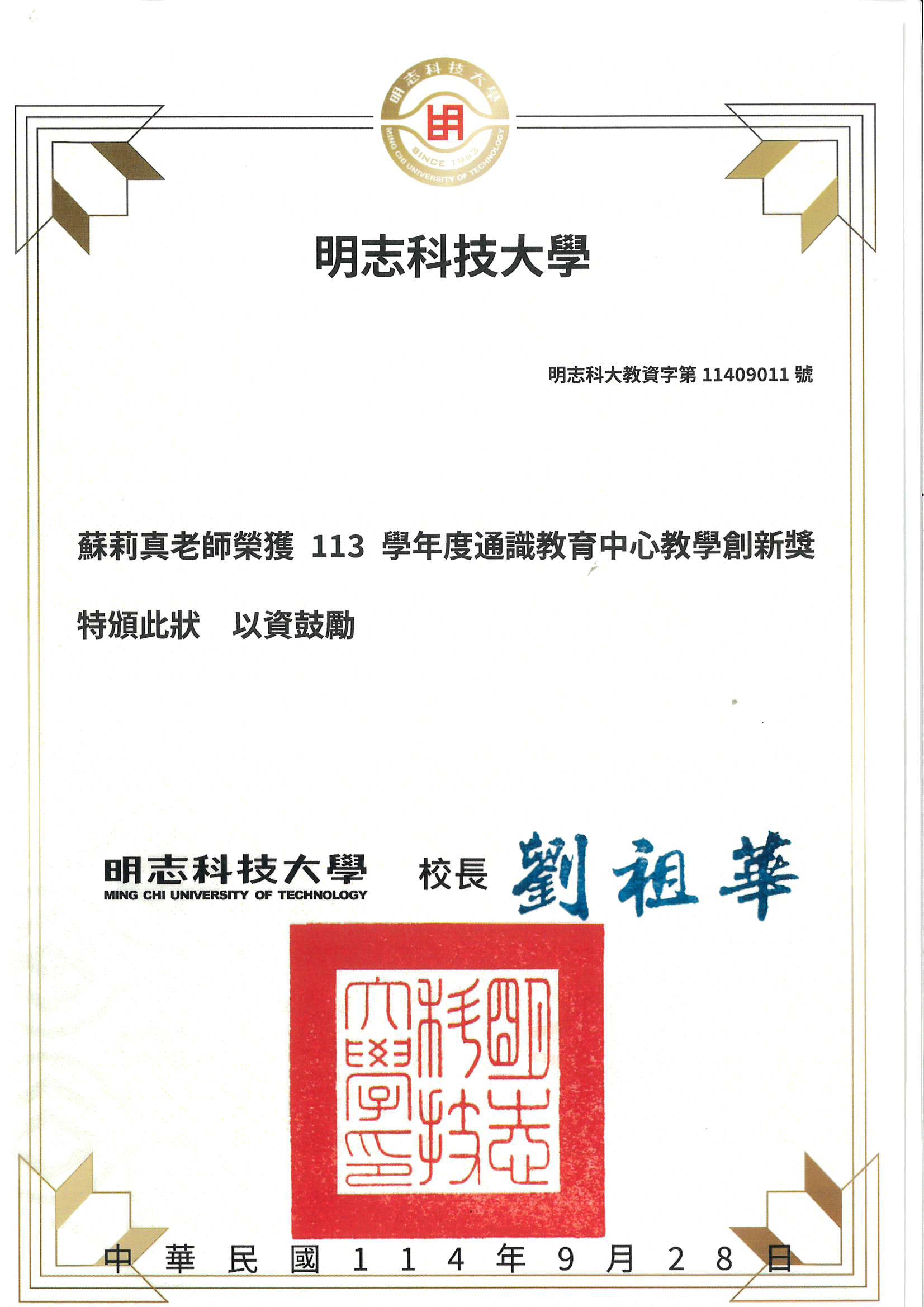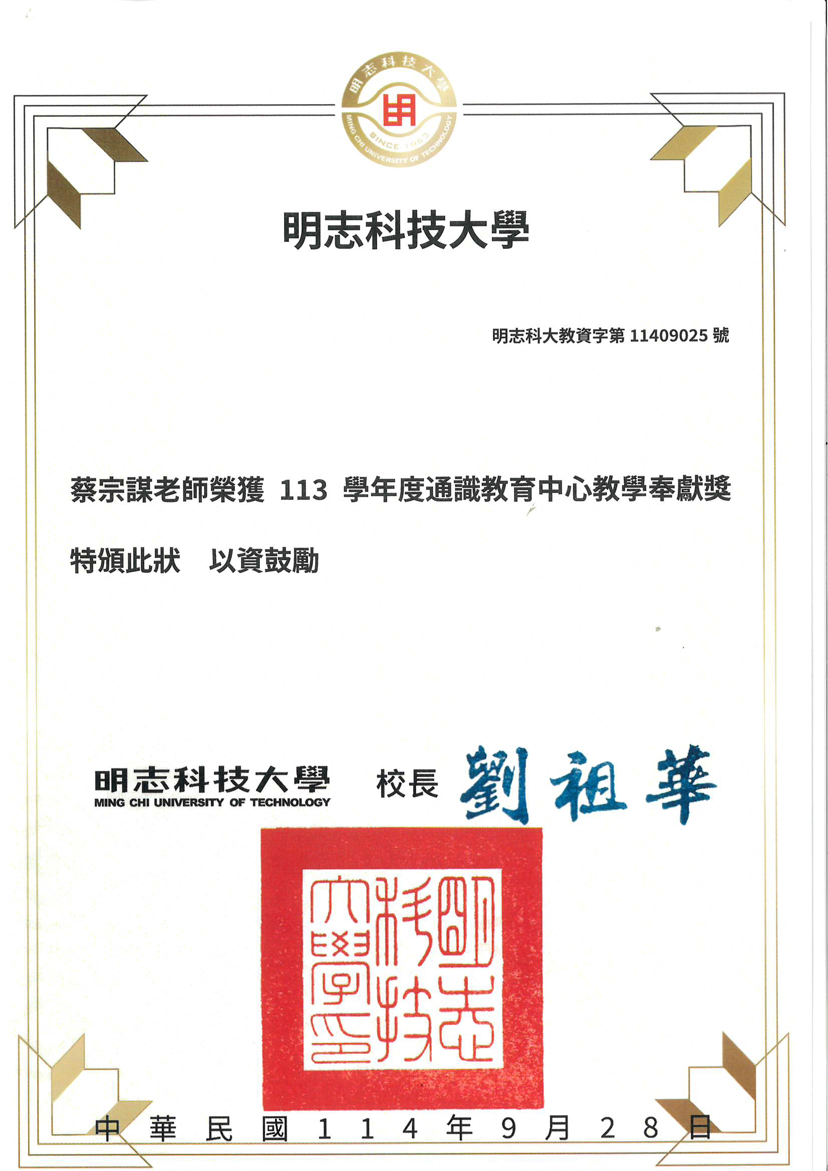 113學年度通識教育中心教學優良獎